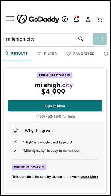 Purchase MileHigh.city TODAY @ GoDaddy